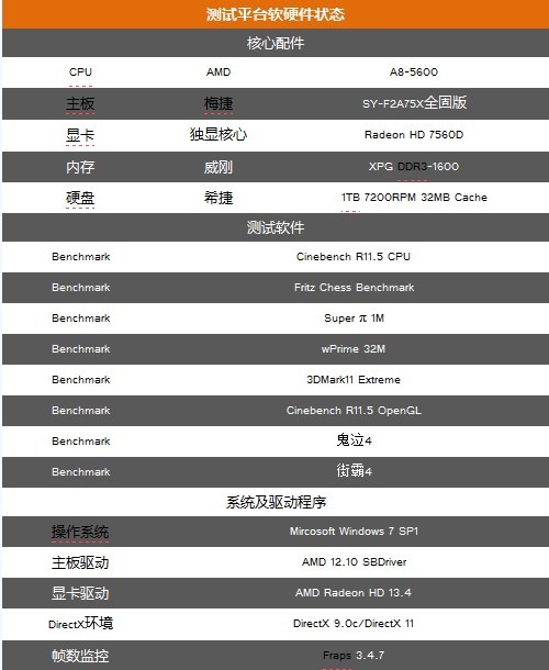 本次測試,我們選擇了主流級的AMD A8-5600處理器來搭建平臺。該處理器擁有4核心,主頻高達(dá)3.6GHz,動態(tài)頻率更是可達(dá)3.9GHz。處理器內(nèi)置了Radeon HD 7560D獨(dú)顯核心,雖然比A10-5800K的內(nèi)置顯示核心的性能稍差,但也完全能夠滿足一般用戶的使用需求。內(nèi)存方面,我們選擇了威剛XPG 1600MHz 4GB*2,主流的內(nèi)存容量及頻率也能充分發(fā)揮APU平臺的性能。