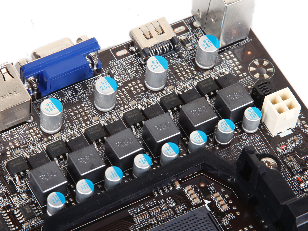 采用高品質(zhì)的固態(tài)電容,特點(diǎn)是穩(wěn)定性高、可靠性強(qiáng)、使用壽命長(zhǎng),是主板的品質(zhì)和優(yōu)異超頻能力的重要保證。