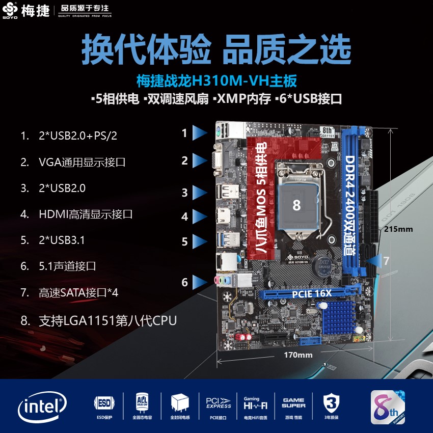 而在主板選擇方面,金牌奔騰G5400最佳搭配當(dāng)屬H310主板,既然是入門級的辦公裝機配置,其實滿足于夠用和好用之間就足夠了。這里小編強烈推薦超性價比高且穩(wěn)定的梅捷戰(zhàn)龍H310M-VH主板。