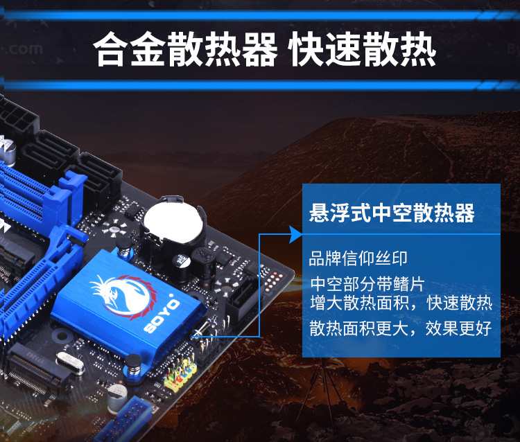南橋采用懸浮式的中空合金散熱器,增大散熱面積,快速散熱,效果更好。梅捷每一款產(chǎn)品出廠之前經(jīng)過嚴(yán)格的出廠測試,保證穩(wěn)定的產(chǎn)品質(zhì)量,讓你的體驗更加出色優(yōu)秀。