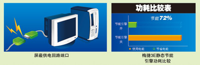 靜態(tài)節(jié)能則是針對關(guān)機(jī)狀態(tài)下的電能損耗而設(shè)計(jì)的。大家都知道,在不切斷電源的情況下,就算計(jì)算機(jī)處于關(guān)機(jī)狀態(tài),同樣會(huì)有間歇性電流通過主板,造成電能的浪費(fèi),而梅捷靜態(tài)節(jié)能技術(shù)則可通過自動(dòng)屏蔽回路端口,阻斷通道電流,避免了關(guān)機(jī)狀態(tài)下的電能浪費(fèi)。