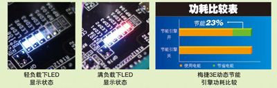 動(dòng)態(tài)節(jié)能是指:主板可以實(shí)時(shí)監(jiān)測系統(tǒng)的負(fù)載狀況,動(dòng)態(tài)打開/關(guān)閉處理器供電相數(shù),以達(dá)到節(jié)能省電的目的。同時(shí)主板板載有LED相數(shù)指示燈,可實(shí)時(shí)顯示系統(tǒng)當(dāng)前的能耗狀況,告知用戶系統(tǒng)是否處于節(jié)能模式。