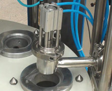 3、該六頭辣椒醬灌裝機具有六個同步注脂灌裝頭,油脂可均勻地被擠壓灌裝到容器里。